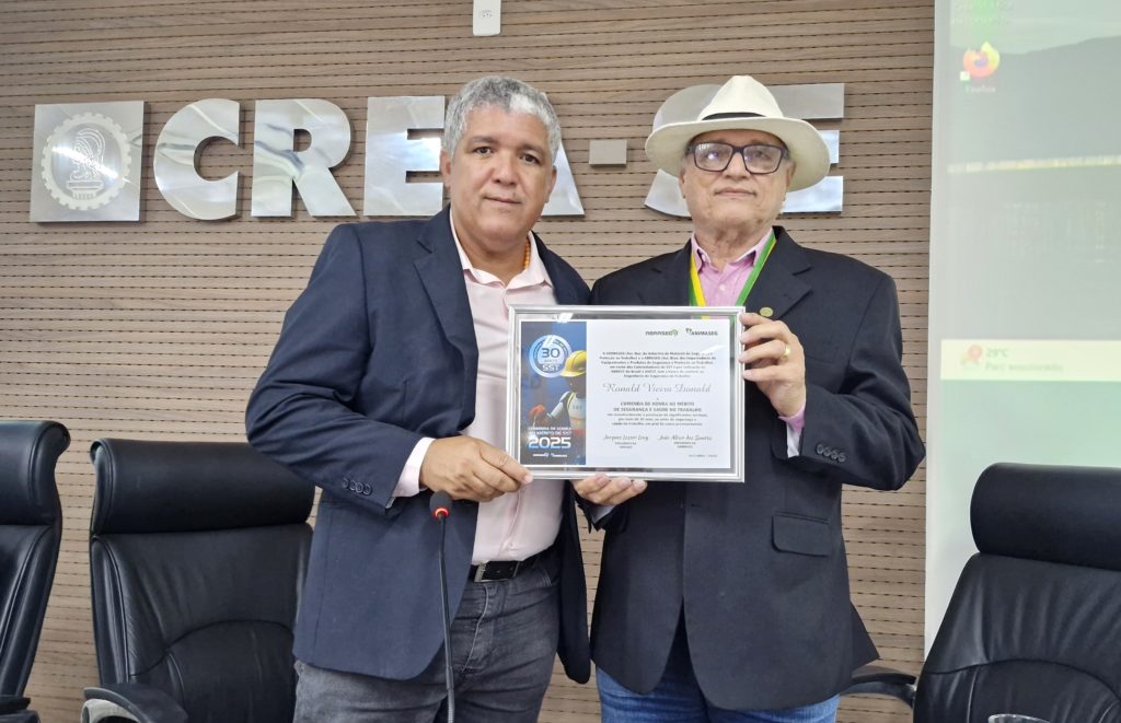 A reunião também foi marcada por um momento de reconhecimento profissional. O engenheiro e presidente da Associação Sergipana dos Engenheiros de Segurança do Trabalho (ASEEST), Ronald Donald, compartilhou com os presentes a outorga da Comenda de Honra ao Mérito em Segurança e Saúde no Trabalho (SST), concedida a ele pela Associação Nacional da Indústria de Material de Segurança e Proteção ao Trabalho (ANIMASEG). Emocionado, agradeceu o apoio do Crea-SE e a presença do presidente no evento de entrega da honraria.