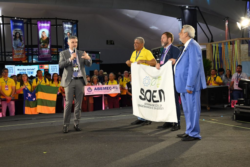 A 80ª Semana Oficial da Engenharia e da Agronomia (SOEA), realizada em Vitória (ES), marcou um momento histórico para Sergipe e para o Sistema Confea/Crea. Durante a cerimônia de encerramento do evento, o presidente do Crea-SE, engenheiro Dilson Luiz de Jesus Silva, recebeu das mãos da organização da SOEA a bandeira que oficializa Aracaju como sede da 81ª edição, em 2026.